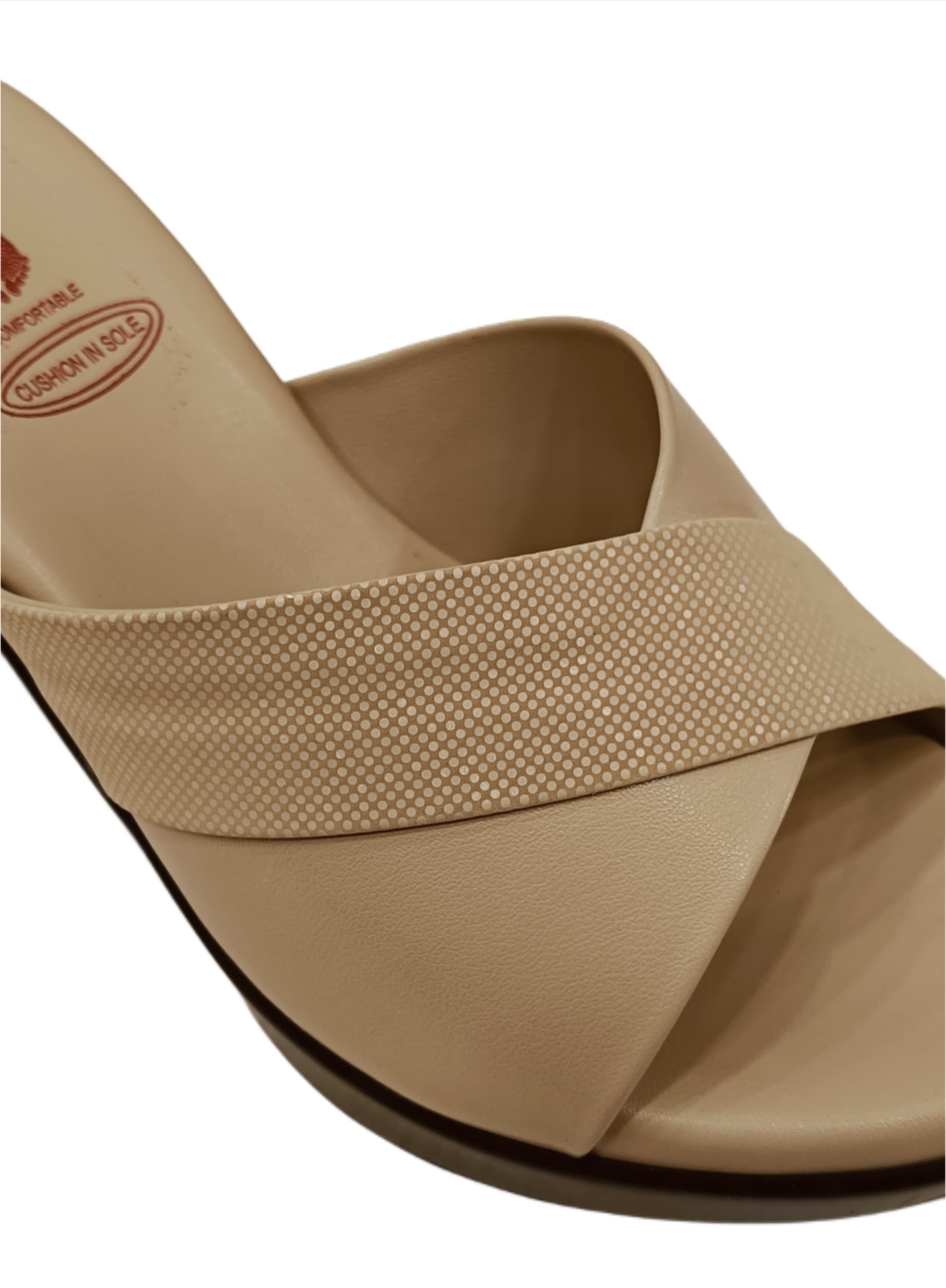 Annie Beige Textured Cross-Strap Block Heel (41034)