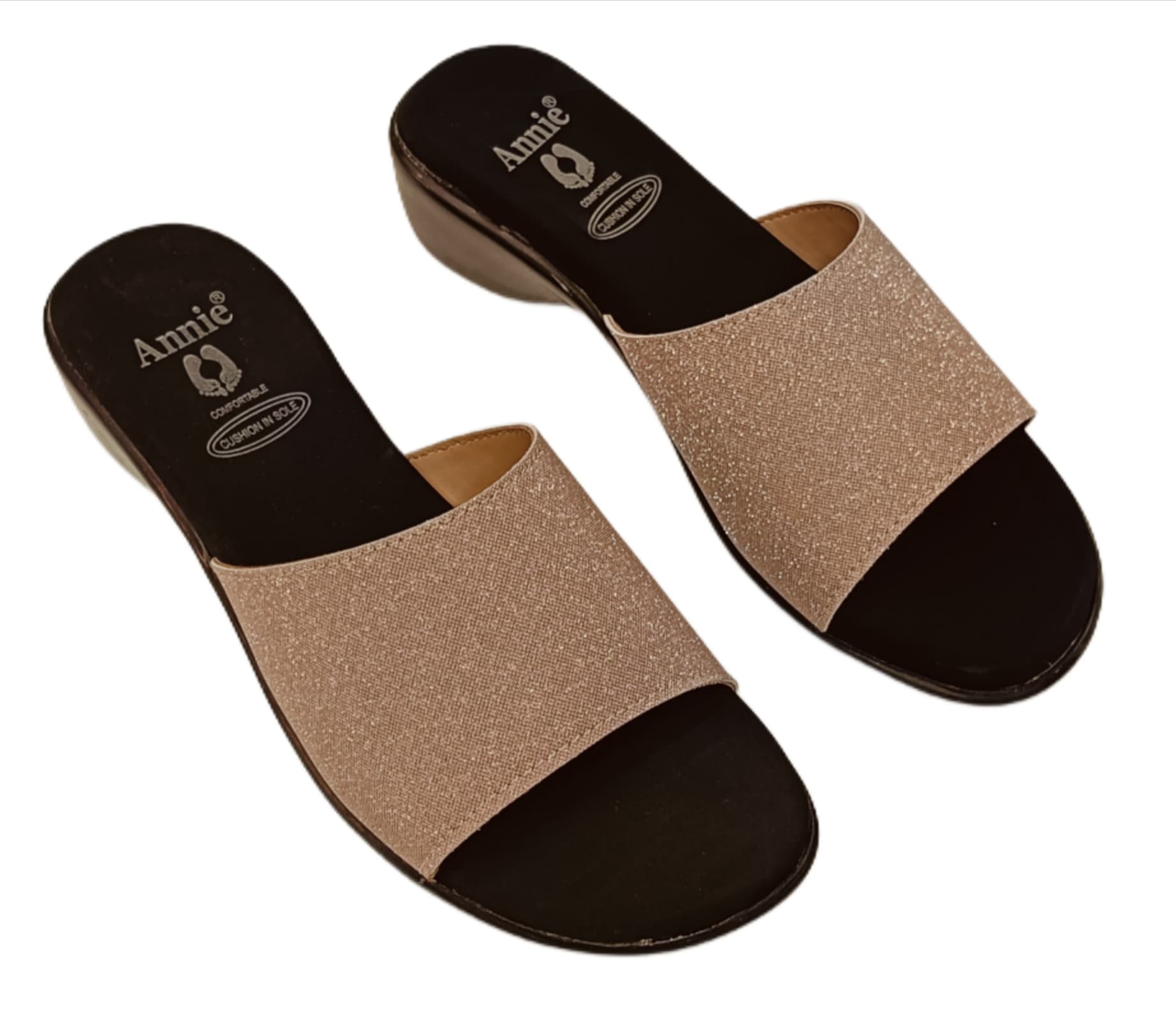 Annie Champagne Glitter Slip-On Block Heel Sandals (3775F)