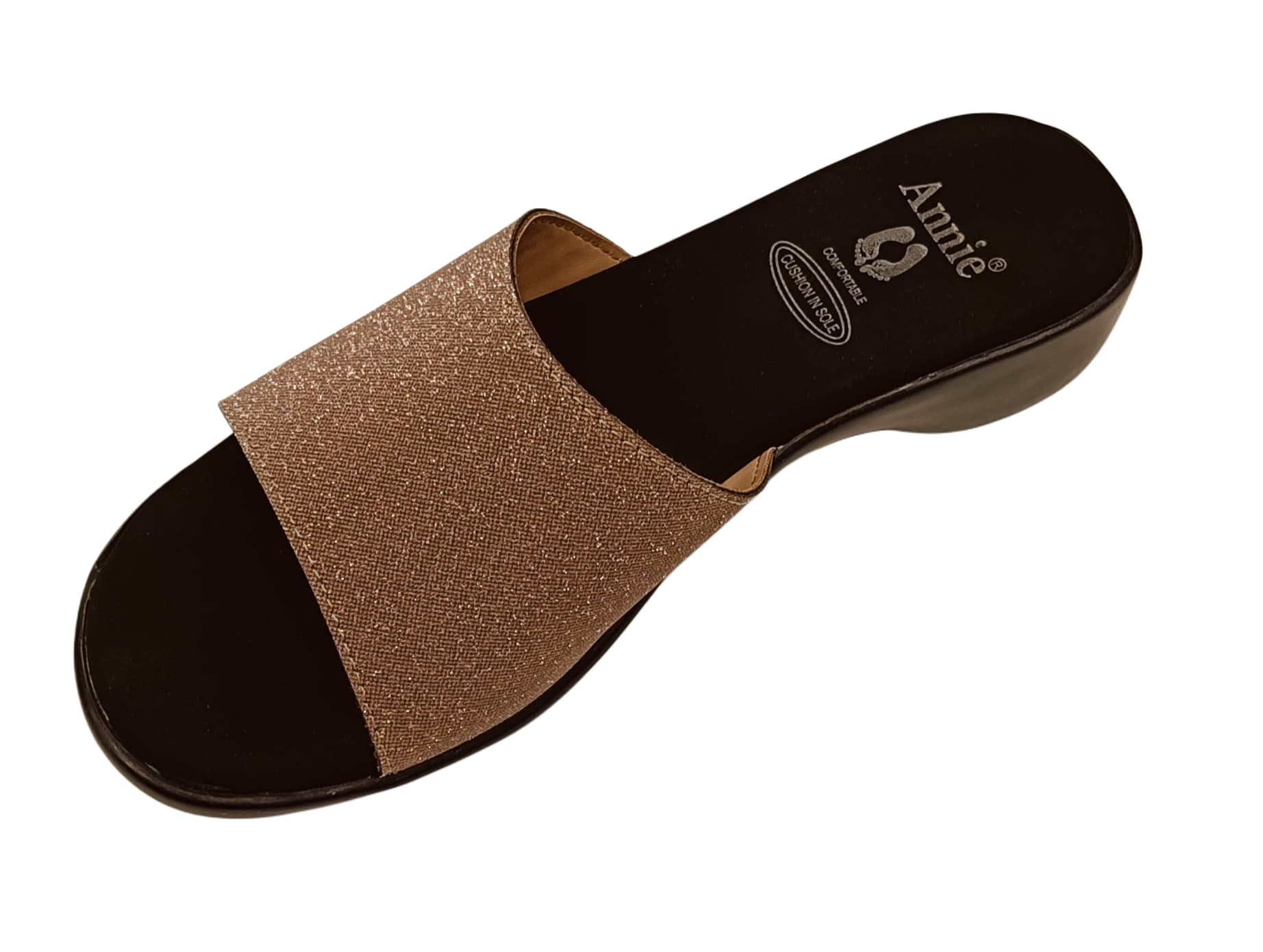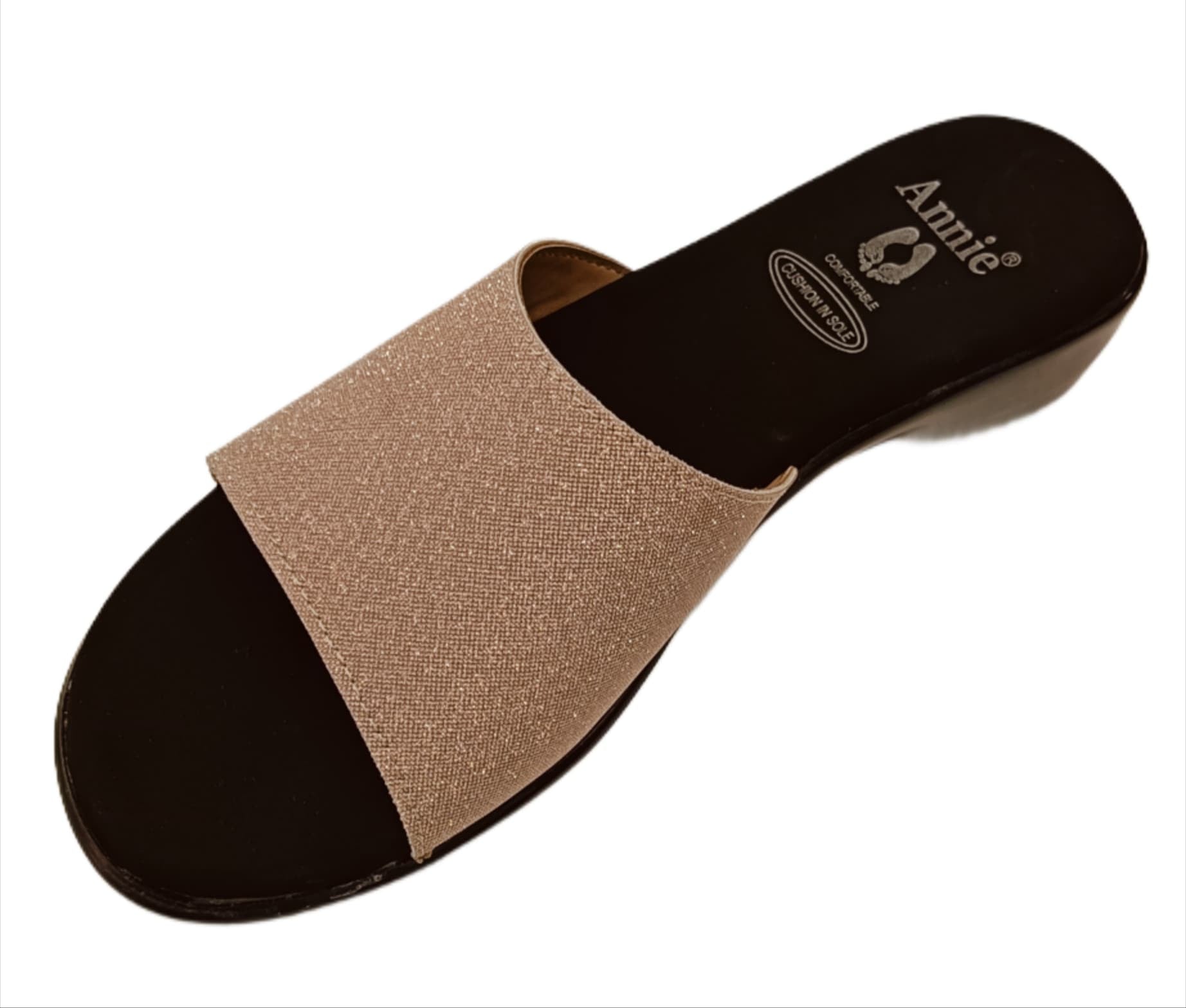Add a touch of sparkle to your every step with the Annieé Champagne Glitter Slip-On Sandals. These elegant block heel sandals feature a shimmering textured strap that enhances your look with subtle glamour. Designed with a comfortable slip-on fit and cushioned footbed, they are perfect for festive occasions, evening outings, or smart casual wear. The low block heel ensures all-day support without compromising style.