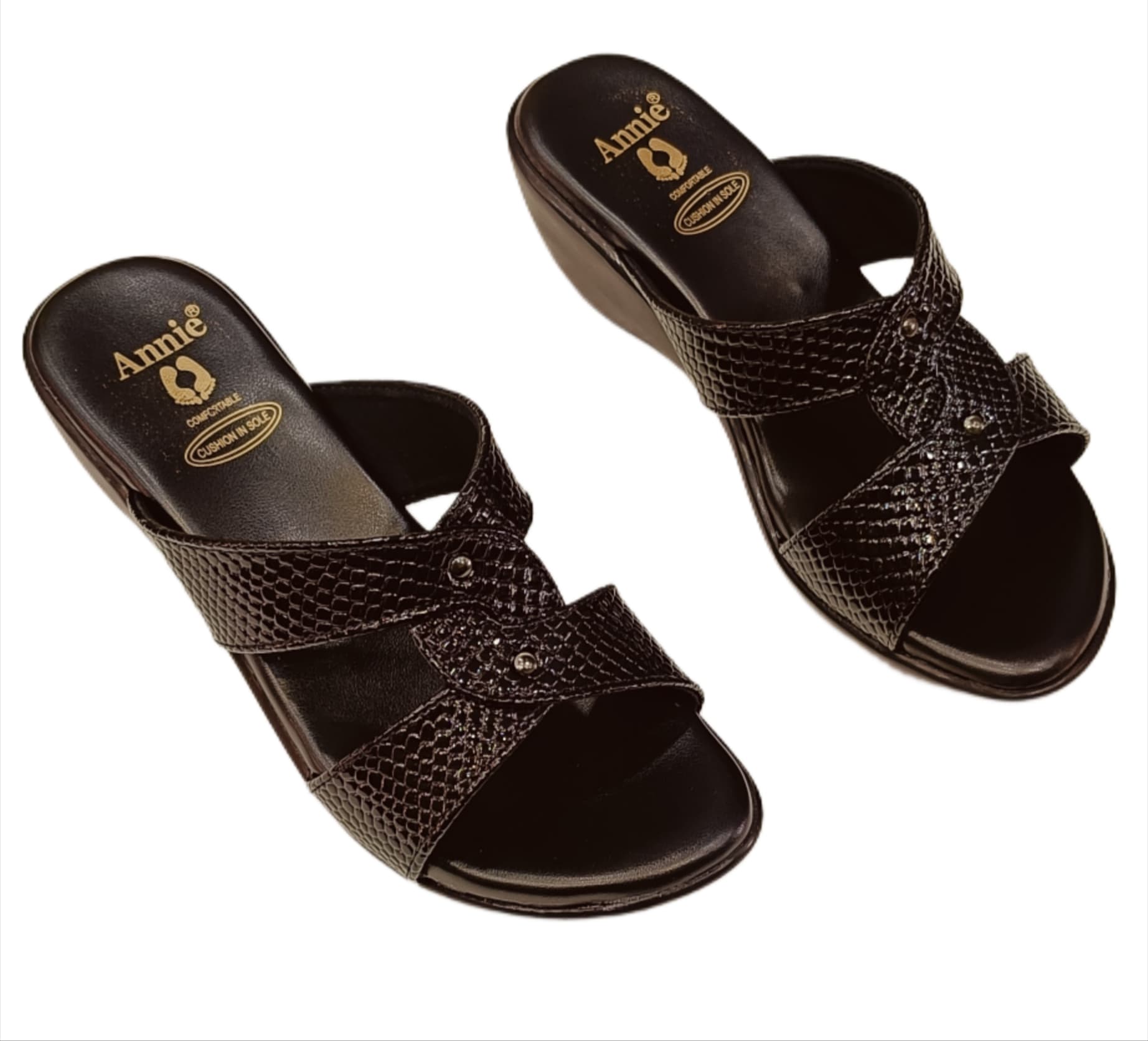 Add a refined edge to your everyday wear with these cross-strap wedge sandals from Annie. Crafted with a faux snakeskin-textured upper and detailed with metallic studs for subtle elegance, these slip-on sandals offer both comfort and sophistication. The soft cushioned insole supports prolonged wear, while the mid-height wedge heel provides a gentle lift, making them ideal for daily and semi-formal outings.