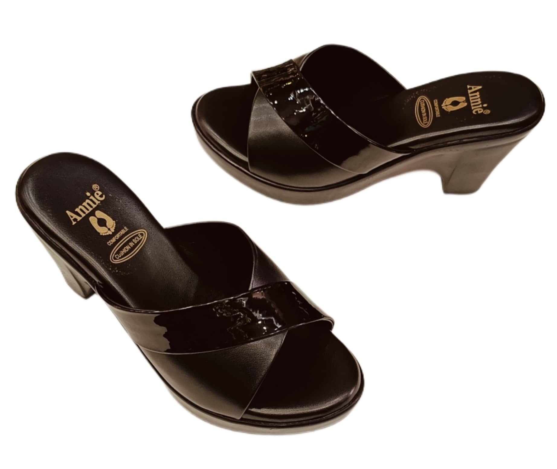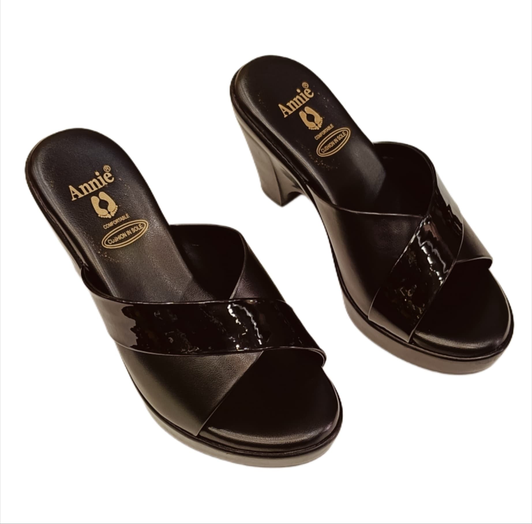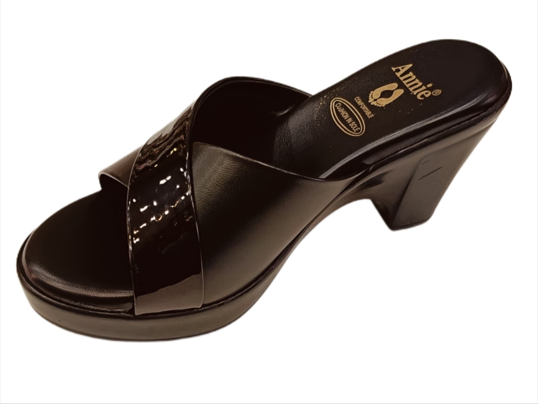 Add a touch of shine to your step with these sleek Annie high-heel sandals. Featuring a chic glossy cross-strap design over a smooth synthetic base, these sandals blend fashion and functionality. The cushioned insole delivers comfort with every step, while the sturdy block heel enhances posture and style. Ideal for casual outings, parties, or festive occasions.