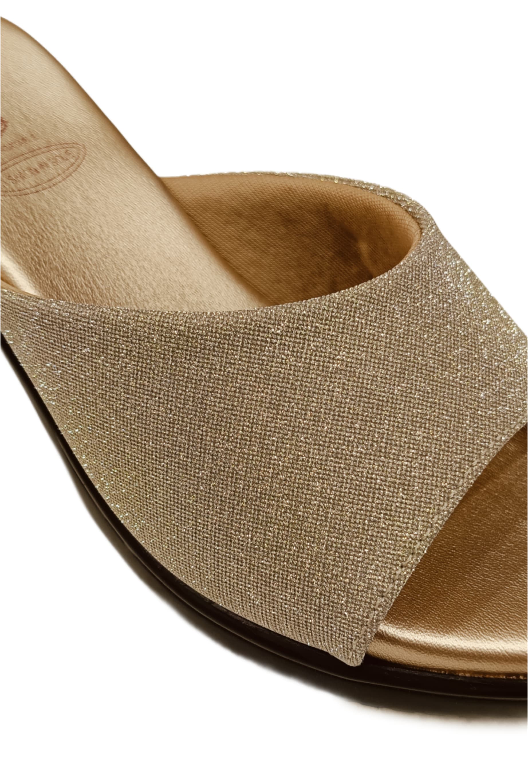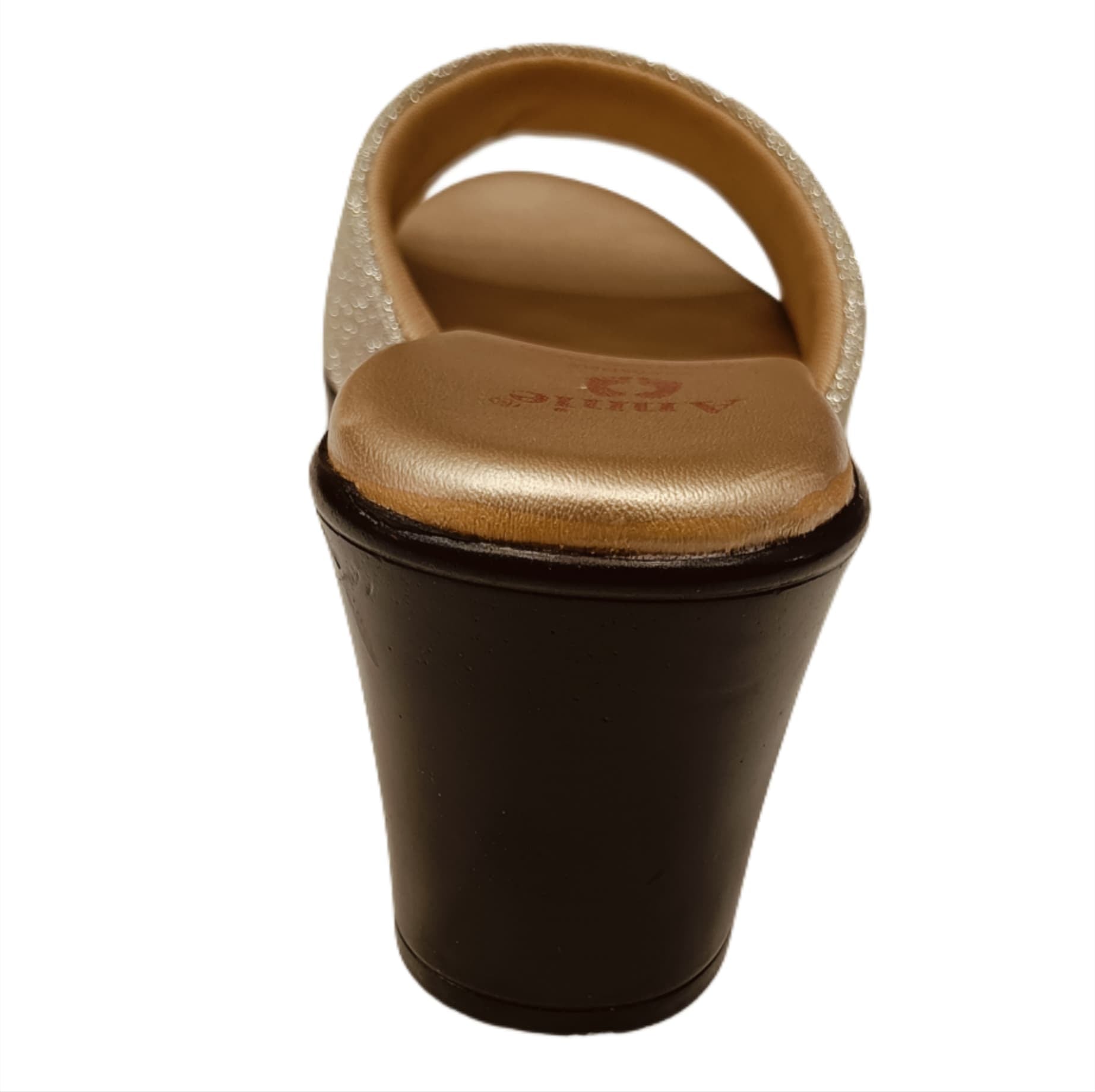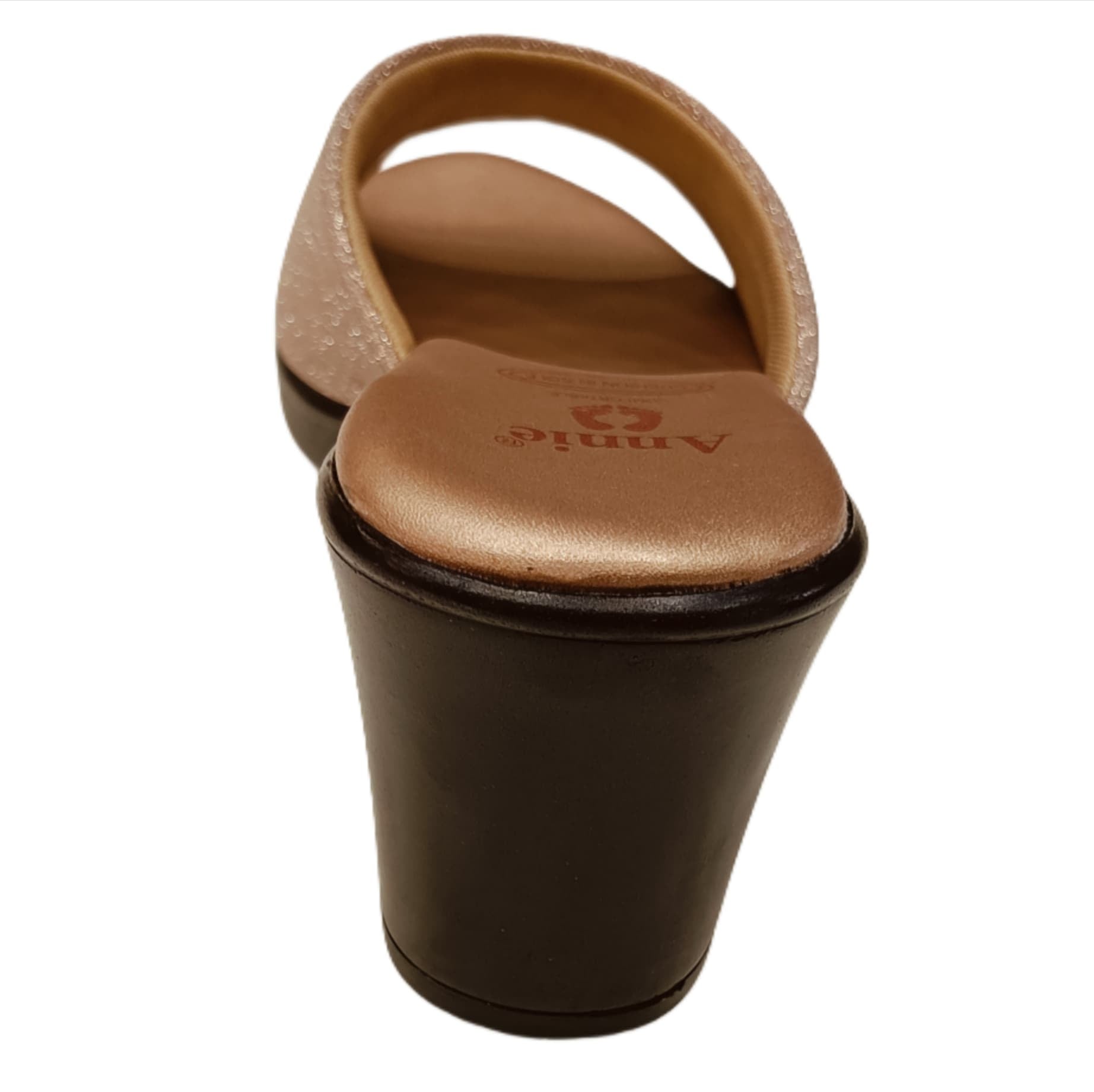 Elevate your ethnic and party look with the Annie Rose Gold Glitter Block Heels . Featuring a soft shimmer-finish upper and a cushioned insole for all-day comfort, these slip-on sandals strike the perfect balance between style and support. The block heel adds just the right amount of height, while the open-toe design ensures breathability and elegance—ideal for festive wear, family functions, and elegant evenings out.
