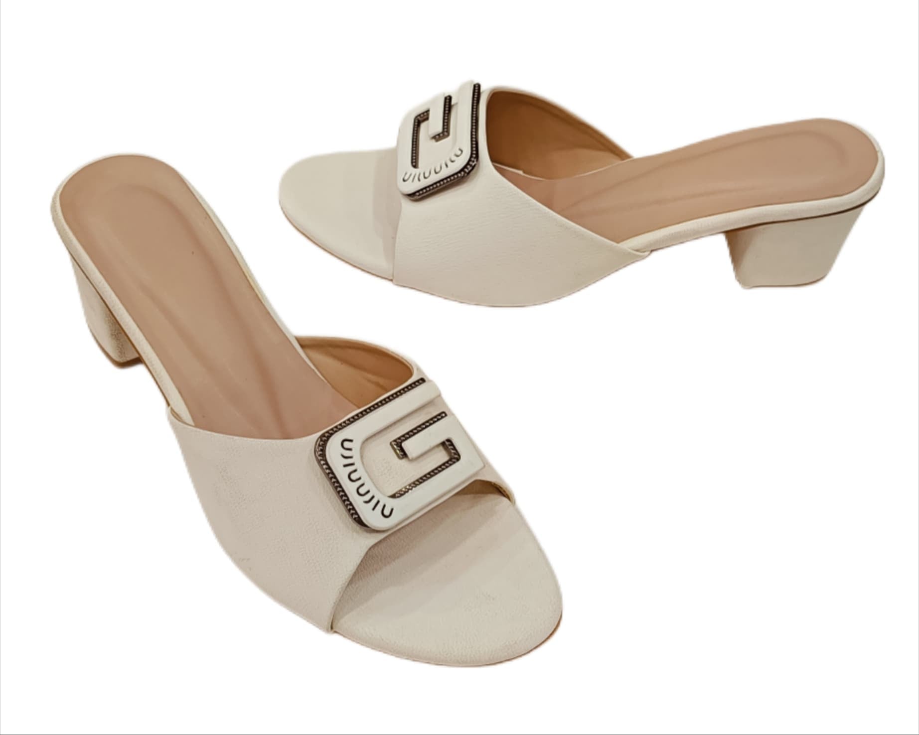 Step into effortless sophistication with these elegant cream mules, designed to elevate your everyday and occasion looks. Featuring a comfortable mid-height block heel and a sleek open-toe design, these heels offer both style and ease. The standout feature is a bold, designer-inspired buckle detail across the front strap, adding a touch of modern charm. Crafted with a smooth faux leather upper and a cushioned footbed, these mules ensure all-day comfort and support.