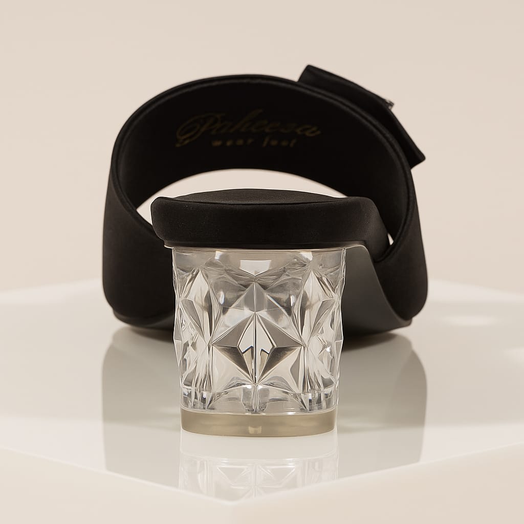 Step into effortless sophistication with these blush pink slide heels, designed for style and comfort. The textured faux leather upper features a stunning oversized bow adorned with shimmering rhinestones, adding a glamorous touch to your outfit. A clear block heel provides subtle elevation while ensuring stability. Perfect for parties, festive occasions, or stylish evening outings.