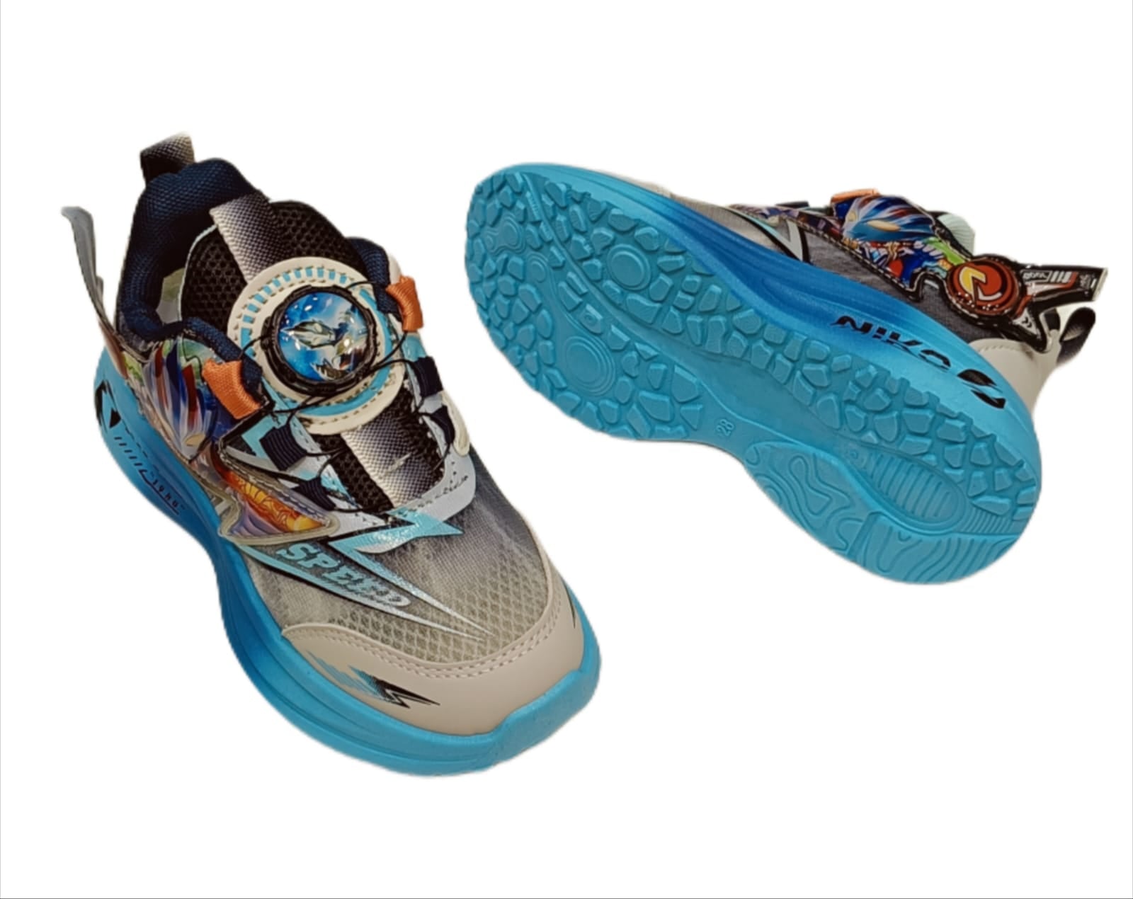 Equipped with a twist-dial closure system, these sneakers are quick and easy to wear without the hassle of tying laces. The cushioned insole ensures all-day comfort, while the sturdy EVA + TPR outsole with textured grip provides stability and slip resistance on different surfaces. A sporty “SPEED” graphic and bold blue sole complete the energetic look, making these sneakers perfect for daily wear, school, outdoor play, and casual sports activities.