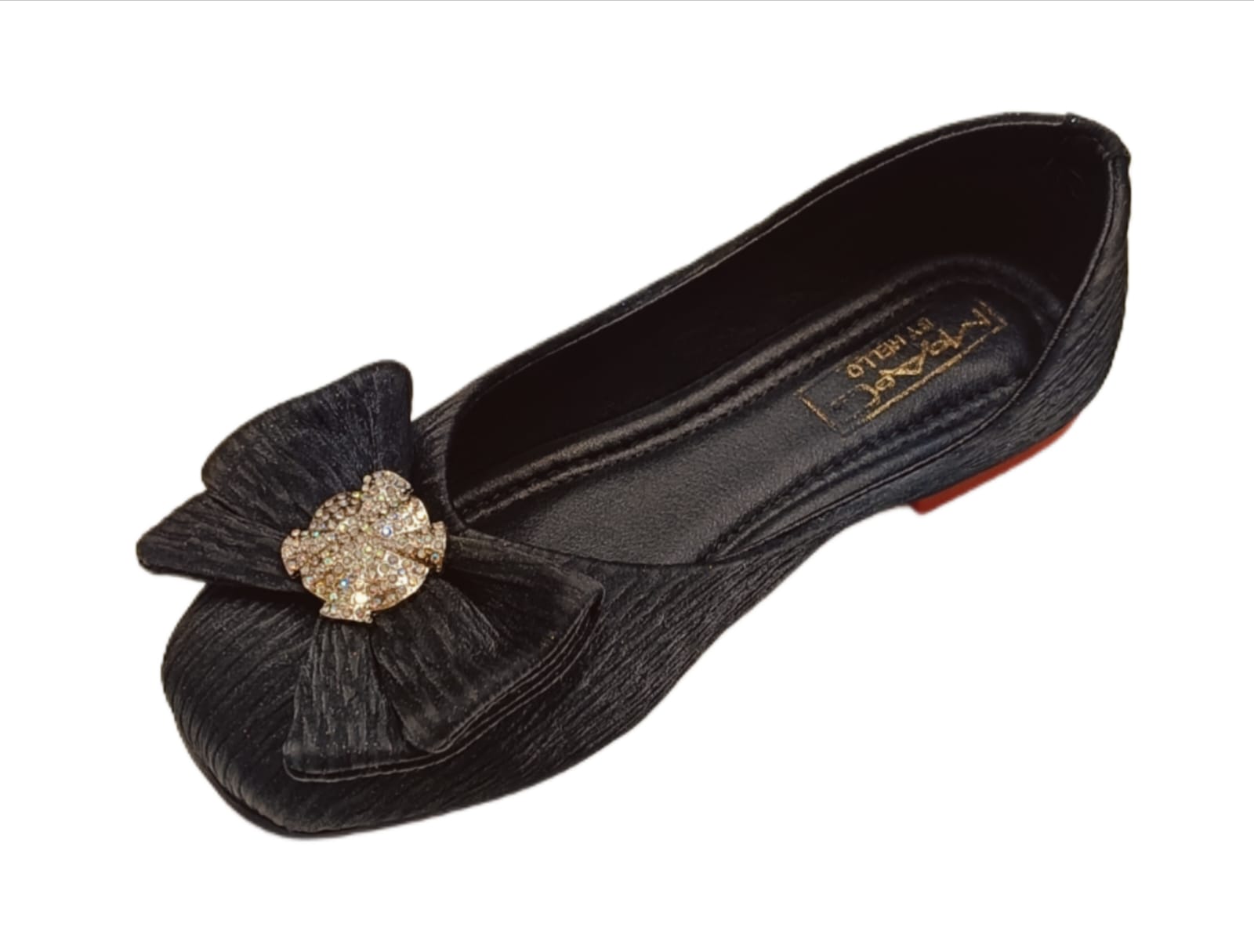 Kids’ Party Wear Ballerina Belly Shoes with Bow & Sparkling Stone Embellishment (KB-038)