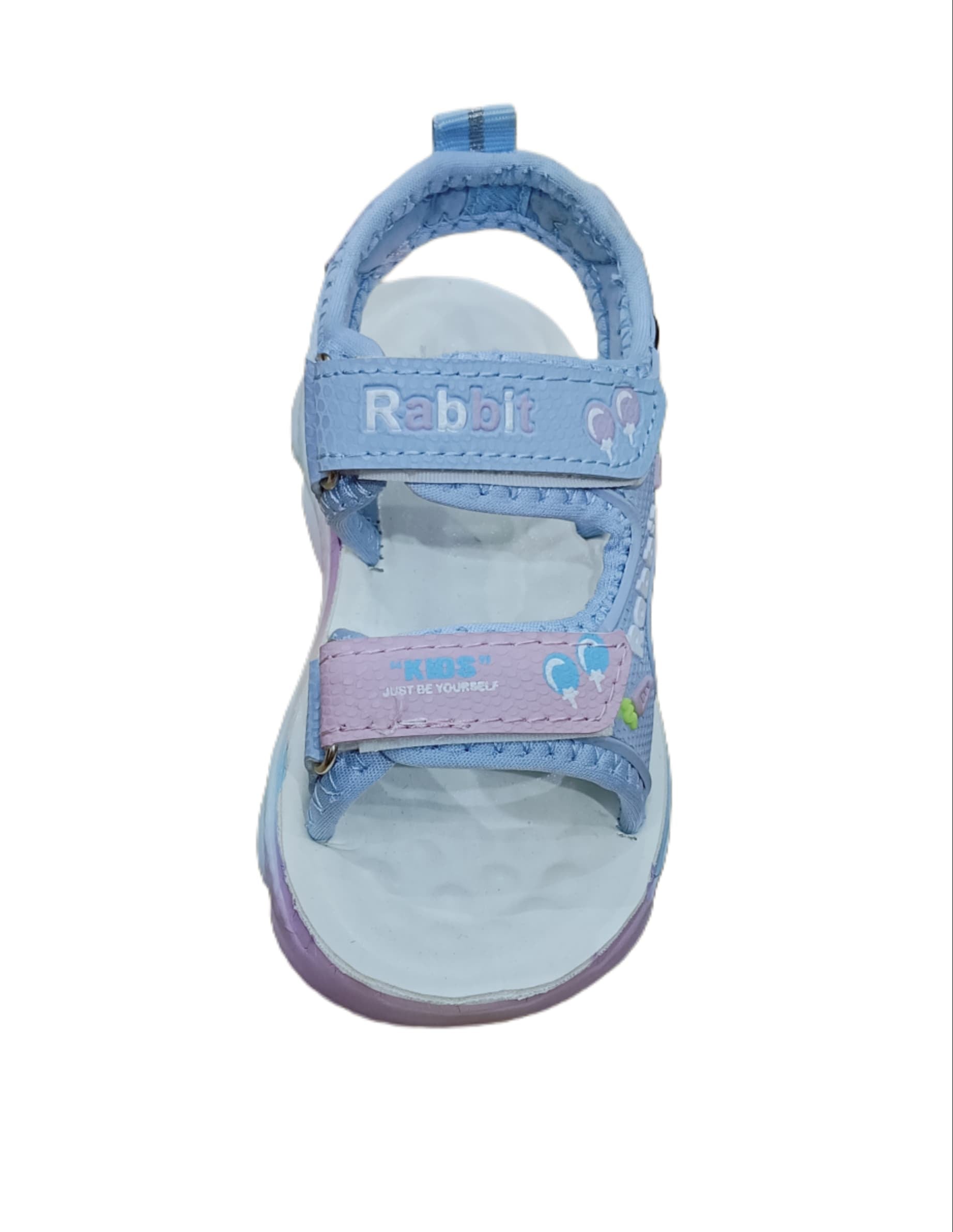 Perfect for playful little feet, these sandals feature a cheerful "Rabbit" theme with colorful accents, including fun balloon prints and a smiling bunny character on the sides. Crafted from high-quality synthetic material, the upper straps are soft yet durable, ensuring a snug fit with easy-to-use Velcro closures. The cushioned footbed offers excellent comfort, while the non-slip sole provides stability for active adventures indoors or outdoors.