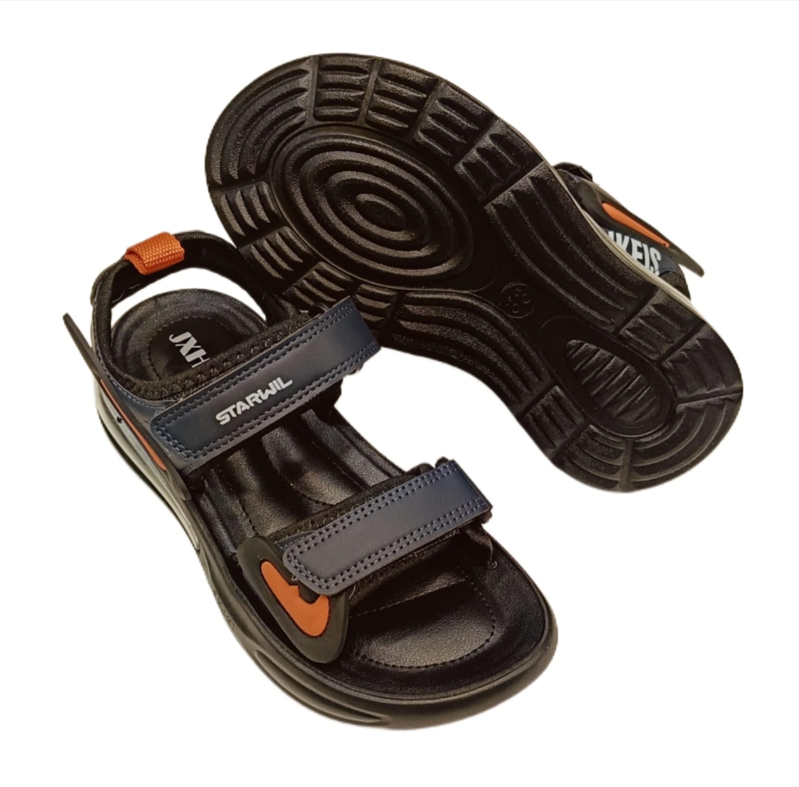 Get your child ready for action with these high-performance sport sandals, built for comfort, durability, and style. Featuring bold dual-color accents and a unique air-cushioned sole design, these sandals provide superior support during all-day play. The adjustable Velcro straps ensure a snug and secure fit, while the open-toe construction allows for breathability and freedom of movement. Available in two dynamic color variants—grey-green and navy-orange—these sandals are perfect for outdoor adventures, everyday wear, or sporty outings.