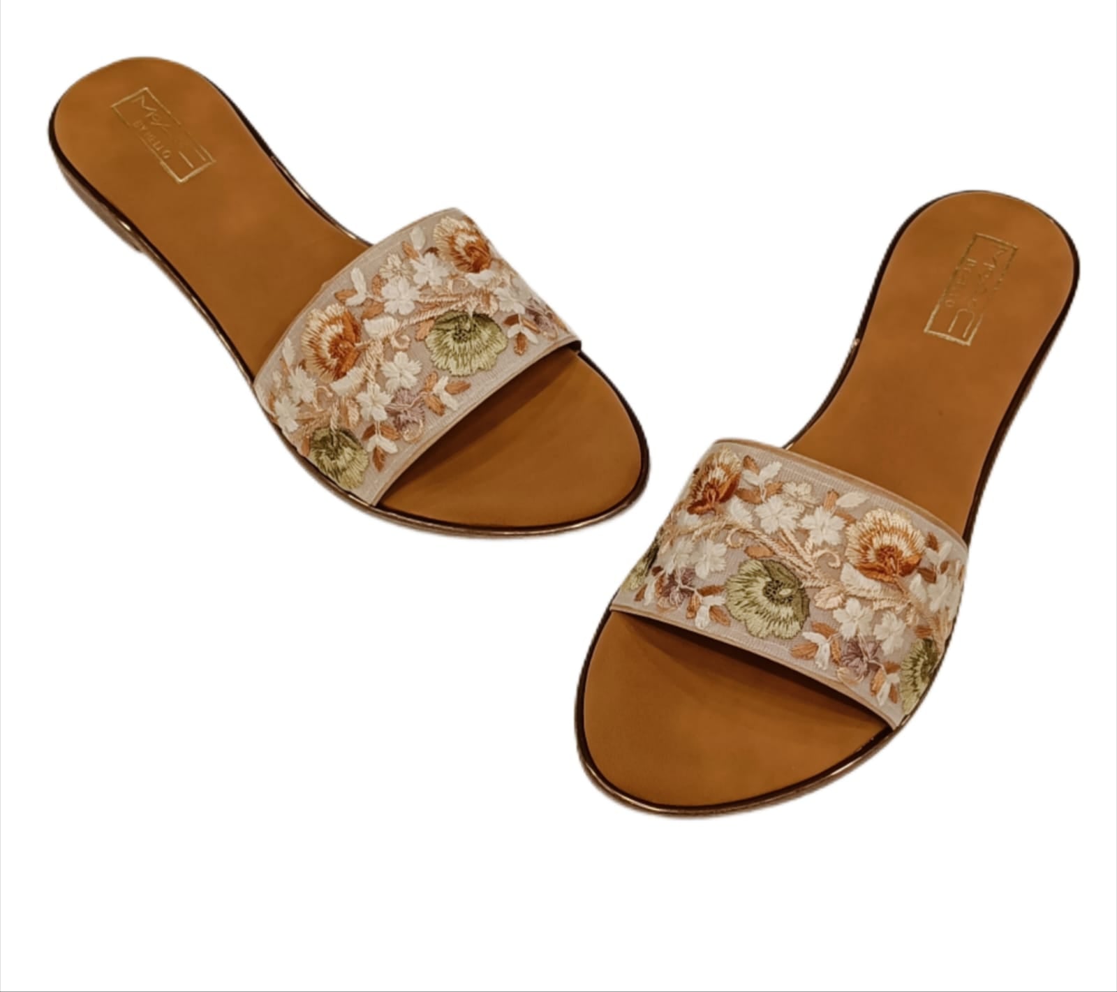 Step into timeless elegance with these beautifully embroidered slip-on flats. Designed with a broad strap featuring intricate multicolor floral embroidery, these flats combine traditional artistry with modern comfort. The cushioned footbed ensures ease of wear, while the open-toe design keeps them stylish and breathable. Perfect for pairing with sarees, suits, lehengas, or even Indo-western outfits, they are a versatile choice for festive occasions, weddings, or daily ethnic wear. Available in Beige Floral and Black Floral.
